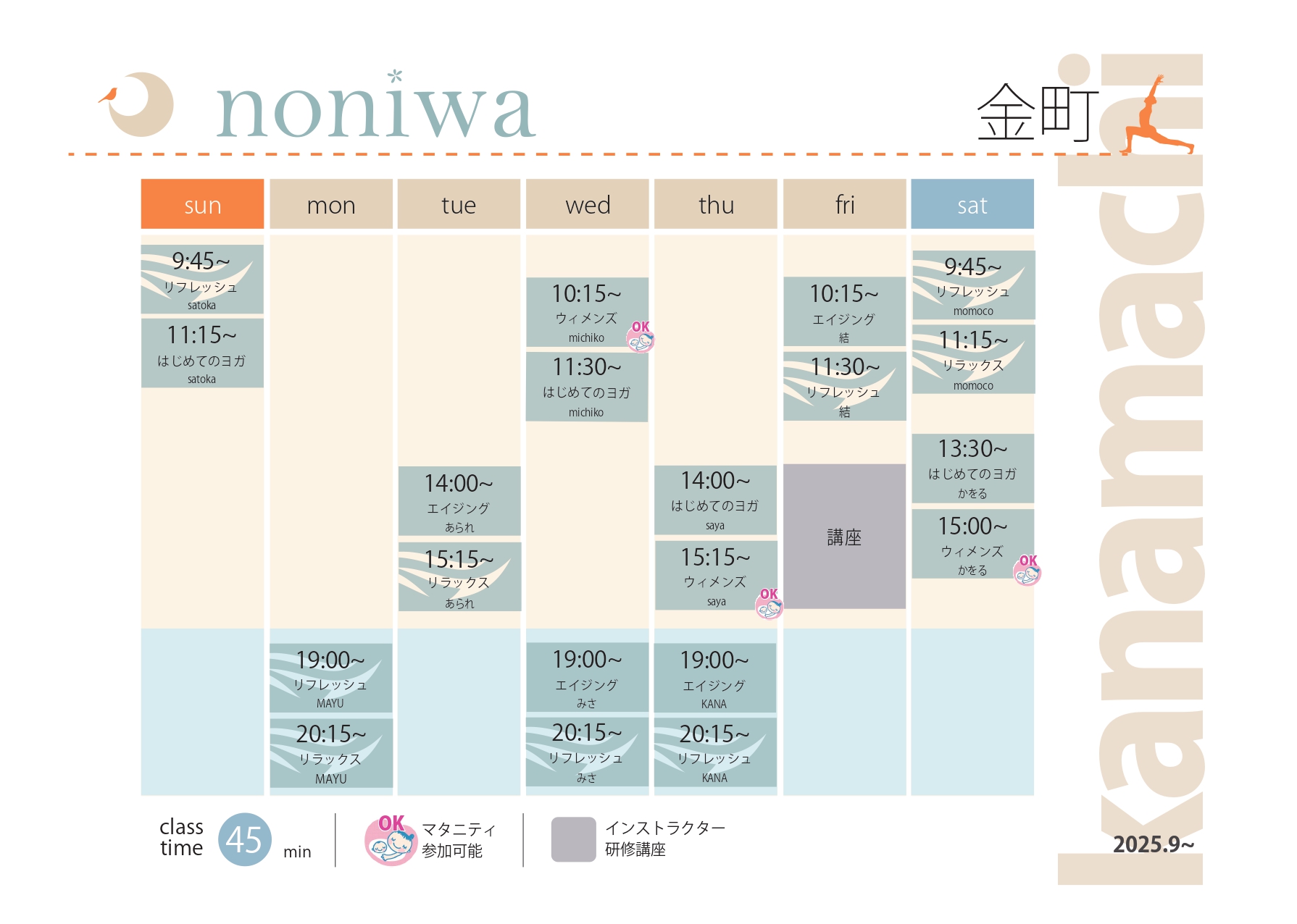 ・9/7(日)@金町 9:45-RsF/ 11:15-BeY satoka →休講:@湯島での75分Special Classにぜひご参加ください!