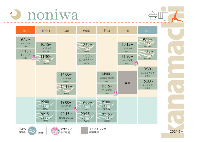 あたらしいnoniwaティーチャーを2名迎えて、バージョンアップした6月のタイムテーブル。