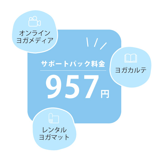 サポートパックとは、ヨガをもっと身近に楽しんでいただけるための3つのサービスがセットになったパックです!